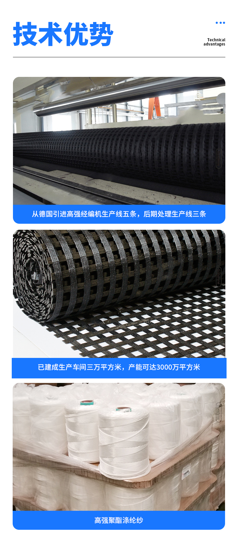 山東陽光新材料經編滌綸土工格柵憑借其出色的性能和廣泛的適用性,在各類工程建設中扮演著不可或缺的角色。隨著工程技術的不斷發(fā)展,相信經編滌綸土工格柵將在未來的基礎設施建設中發(fā)揮更大作用,為我們打造更加穩(wěn)固、安全的生活環(huán)境。